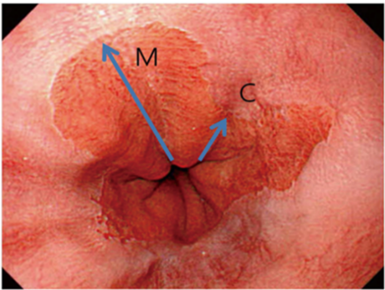 Ved gastroskopi må CM-klassifikasjonen anvendes (Praha kriteriene), der C er sirkulær og M maksimal utbredelse. Funnet må dokumenteres med et bilde der også lokaliserte forandringer innenfor BØ dokumenteres og angis etter Paris klassifikasjonen. Ved BØ skal synlige forandringer biopseres, fulgt av 4-kvadrant biopsier hver 2. cm innenfor BØ på nummererte glass.