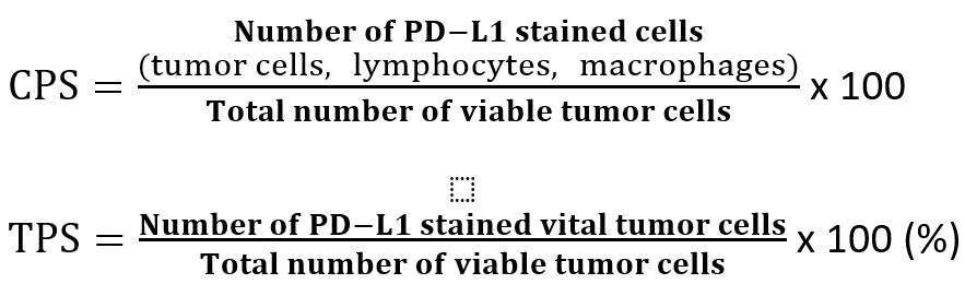 PD-L1 analyseres ved immunhistokjemisk undersøkelse av snitt fra biopsi- eller operasjonsmaterialet. Snittene vurderes mht positivitet i tumorceller (membranpositivitet) og tumorassosierte betennelsesceller (membran- og/eller cytoplasmapositivitet). Ved PD-L1 testing av adenokarsinomer i spiserør og magesekk benyttes i henhold til gjeldende retningslinjer, «Combined Positive Score» (CPS). Ved plateepitelkarsinom i spiserøret vurderes CPS og i tillegg «Tumor Proportion Score» (TPS).