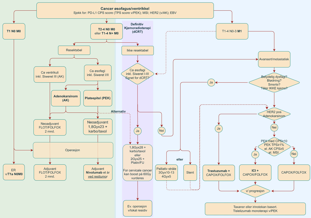 Dermed vil de fleste tilfellene av kreft i spiserør og magesekk forekomme i overgangen mellom disse organene. Det er derfor fordelaktig å samle kreft i spiserør og magesekk i et handlingsprogram.
